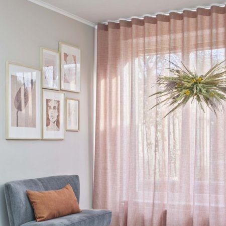 Inbetweens geven je interieur een open en luchtig gevoel. Als de zon schijnt buiten wil je daar binnen natuurlijk van meegenieten. Door de semi transparante stof krijg je een mooie lichtfiltering in je kamer. Inbetweens zitten qua stofdichtheid tussen overgordijnen en vitrage in. Ook erg mooi in combinatie met gordijnen maar ook met raamdecoratie. Ze geven vooral een gezellige indruk en de akoestiek is hierdoor ook erg goed.
